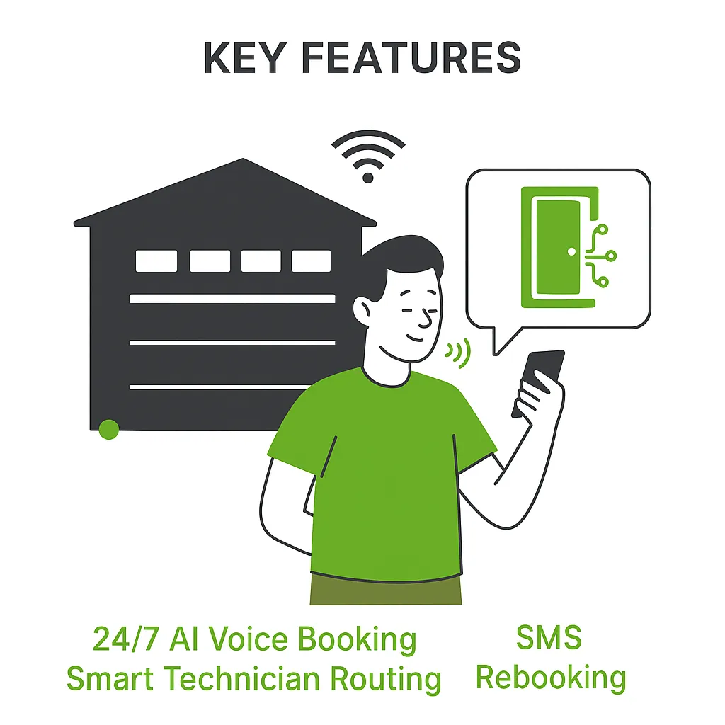 Door AIAgent is an AI-powered voice booking system that lets you schedule garage door repairs and emergency services just by speaking. It’s fast, simple, and available 24/7.